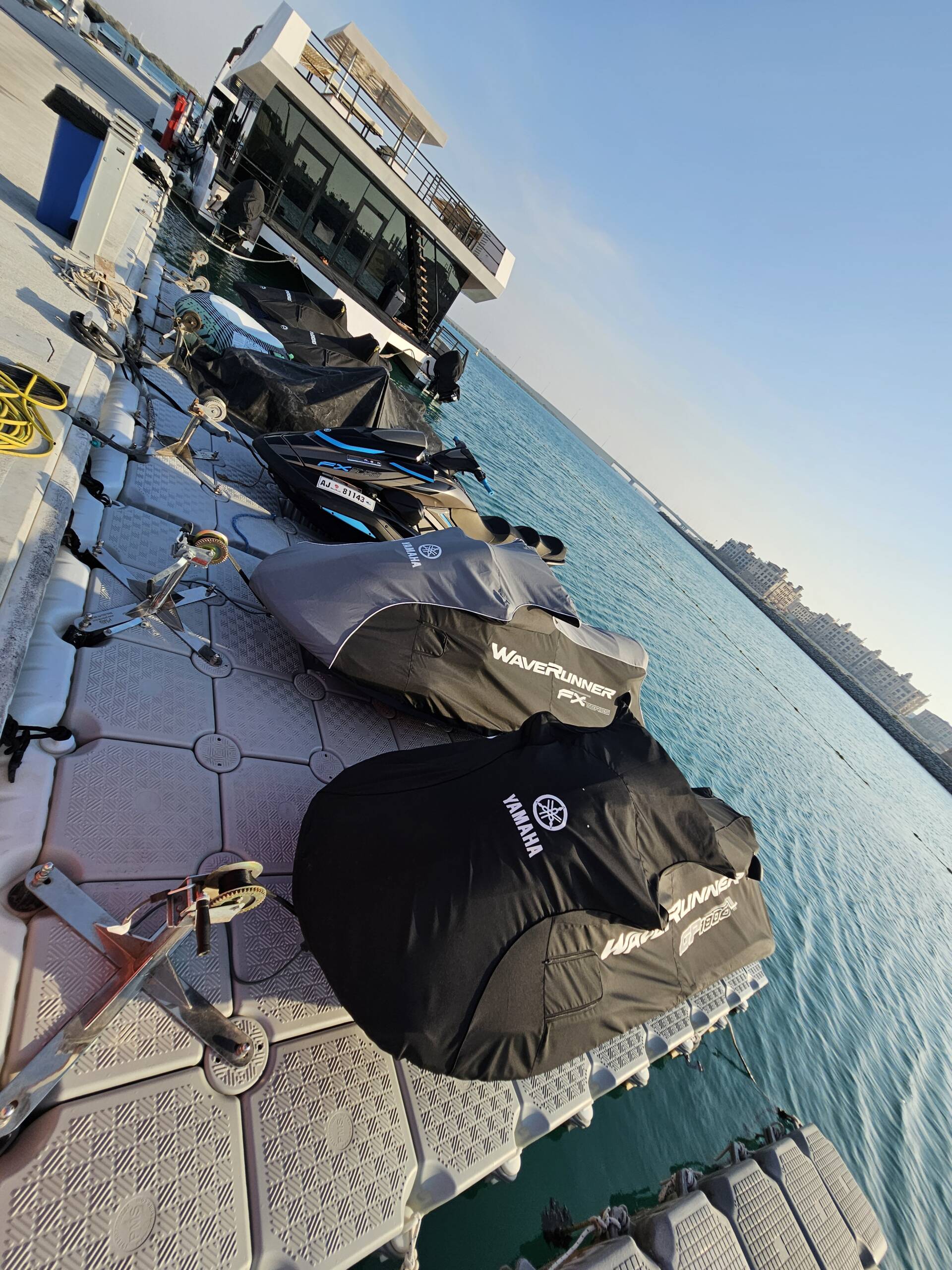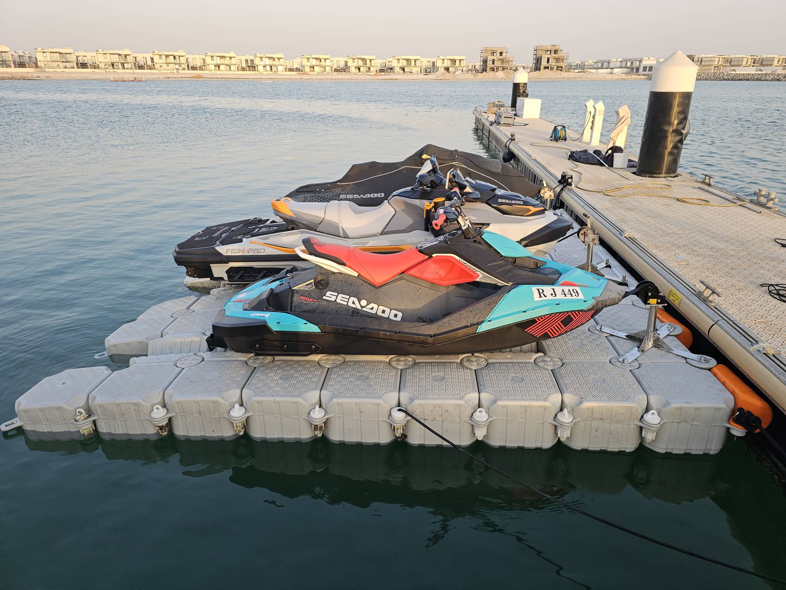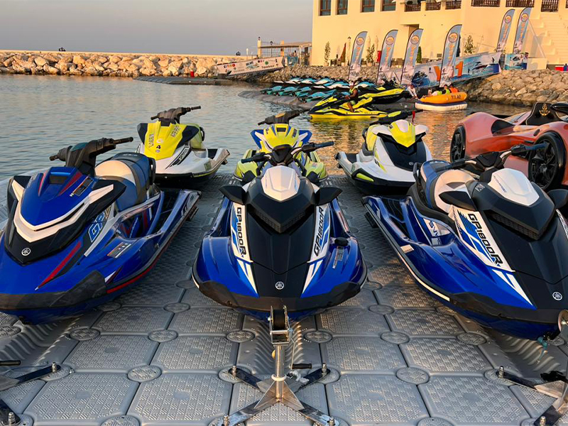 WaveTech Marine Docks high-performance jet ski floating docks; popular amongst commercial jet ski rental businesses across the UAE, providing secure, stable, and damage-free storage solutions for personal and commercial use.